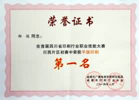 2012年獲得第三屆全國(guó)印刷行業(yè)職業(yè)職能大賽(四川賽區(qū))選拔賽平版印刷類二等獎(jiǎng)